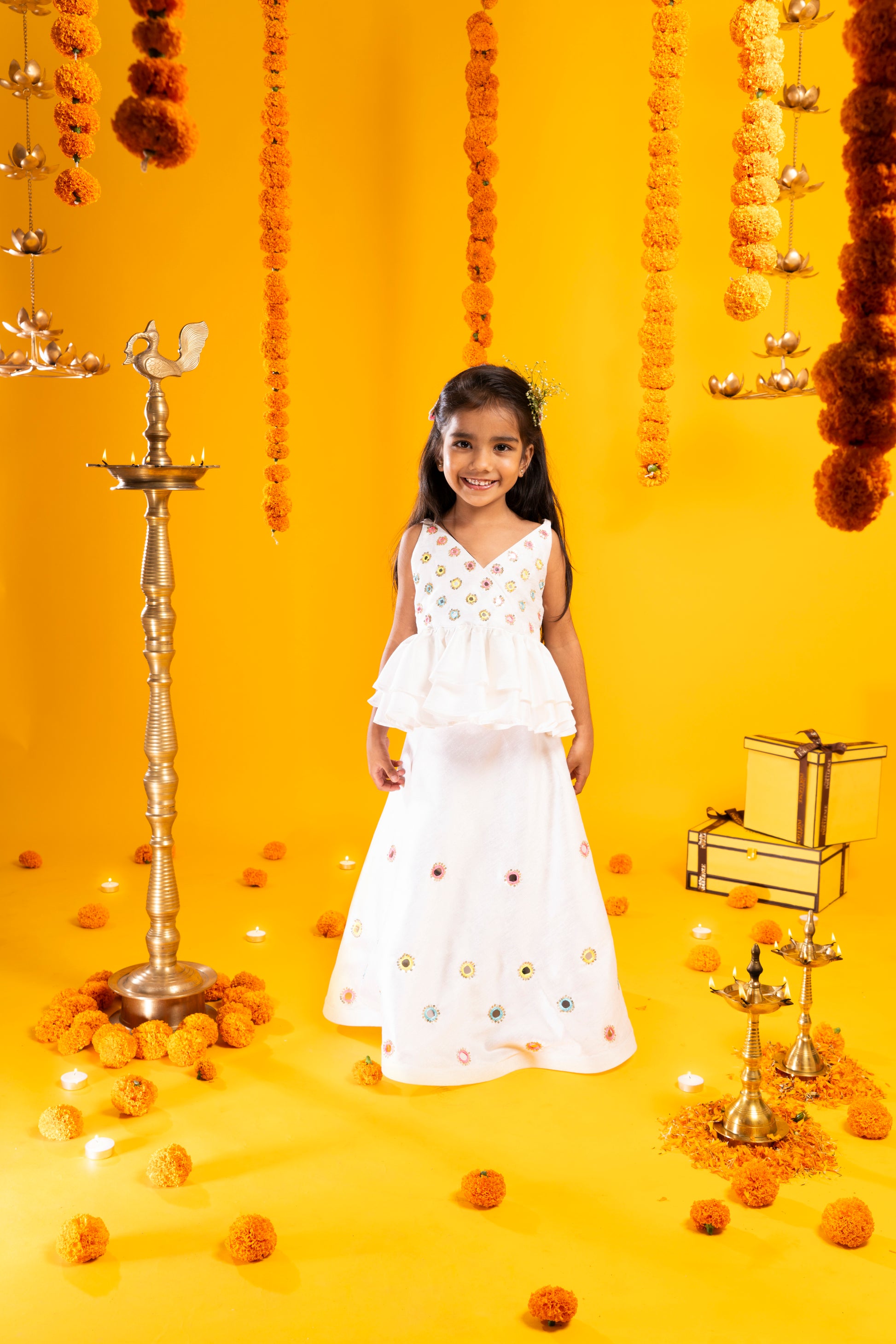 Dressed in the subtle shimmer of cotton silk and adorned with mirror work and sequins, your little one is ready to sparkle this festive season and shine bright.